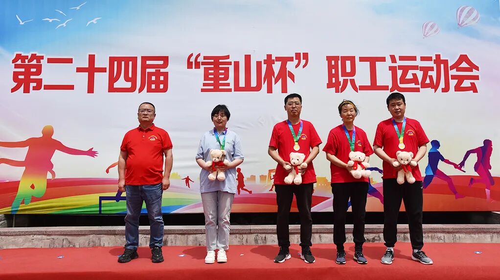 經(jīng)過(guò)激烈的角逐,我公司許澤、杜曰強(qiáng)、孫以志、殷曰顏、梁揮、齊峰山獲男子籃球亞軍,財(cái)務(wù)部孟敏敏獲女子乒乓球冠軍,財(cái)務(wù)部崔麗明獲女子乒乓球亞軍,9#材料項(xiàng)目部王榮澤獲男子乒乓球冠軍,特種裝備新能源電源技術(shù)事業(yè)部王靜、張停、劉鑫瑩、劉秀珍獲四人三足亞軍,集團(tuán)領(lǐng)導(dǎo)為各獲獎(jiǎng)選手頒獎(jiǎng)并合影留念,第二十四屆“重山杯”職工運(yùn)動(dòng)會(huì)圓滿收官。
